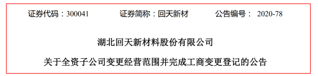 昨日,回天新材发布关于全资子公司湖北回天新材料(宜城)有限公司变更经营范围并完成工商变更登记的公告。