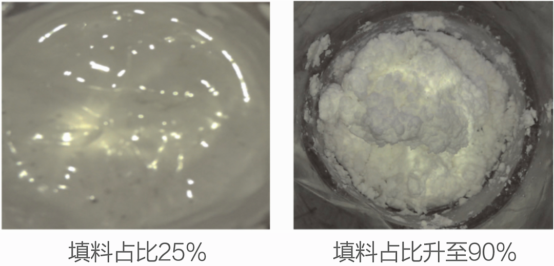 然而事情不会那么简单,当导热填料增加,凝胶自身的黏稠度也会急剧升高。最直接的后果就是挤出率大幅降低!