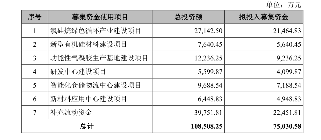 作为中国有机硅行业中生产规模最大的企业之一,东岳硅材本次发行股份总数量为3.00亿股,募集资金总额20.7亿元,用于30万吨/年有机硅单体及20万吨/年有机硅下游产品深加工项目。该项目为山东省新旧动能转换重大工程项目。