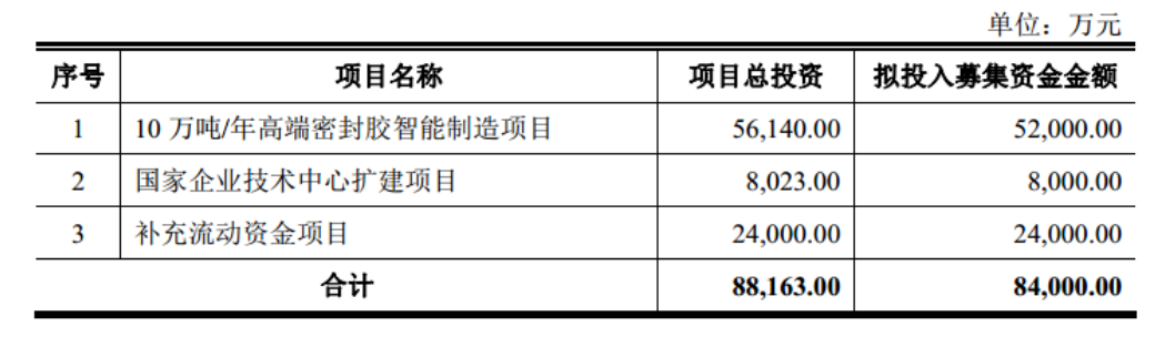 6月,成都硅宝科技股份有限公司申请定增募资8.4亿,拟建10万吨密封胶项目。
