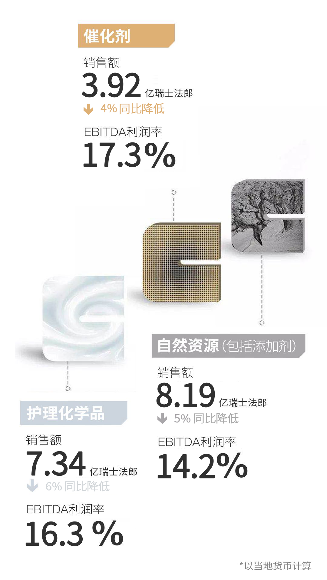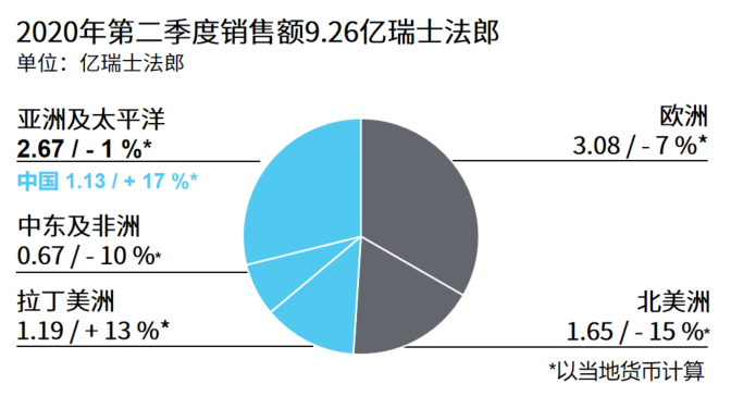 2020年上半年以当地货币计算,持续经营业务销售额下降5%,为19.45亿瑞士法郎。