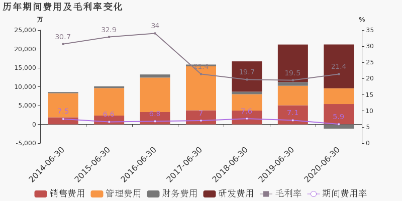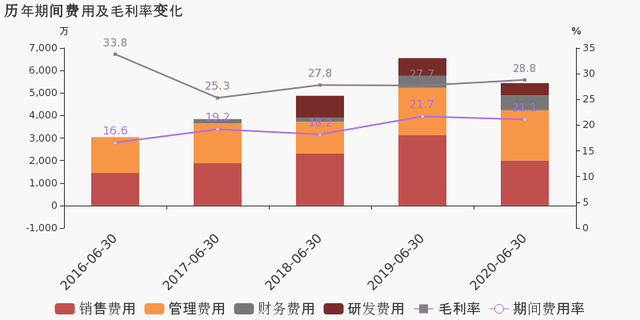 公司2020半年度营业成本26.5亿,同比增长10.6%,低于营业收入13.3%的增速,导致毛利率上升1.9%。期间费用率为5.9%,较去年下降1.2%。经营性现金流大幅上升175.2%至2.3亿。