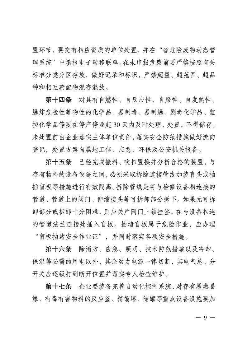 ▲自行或被责令停产停业目前已超过180天的企业,要在通知下发之日起30日内清空装置、设备设施、仓库内的残余物料。