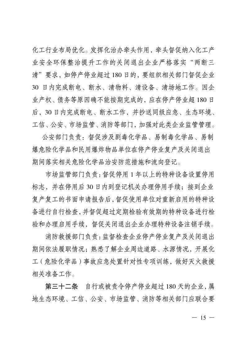 ▲自行或被责令停产停业整改明确需超180天以上的企业,要在180天内清空装置、设备设施、仓库内的残余物料。