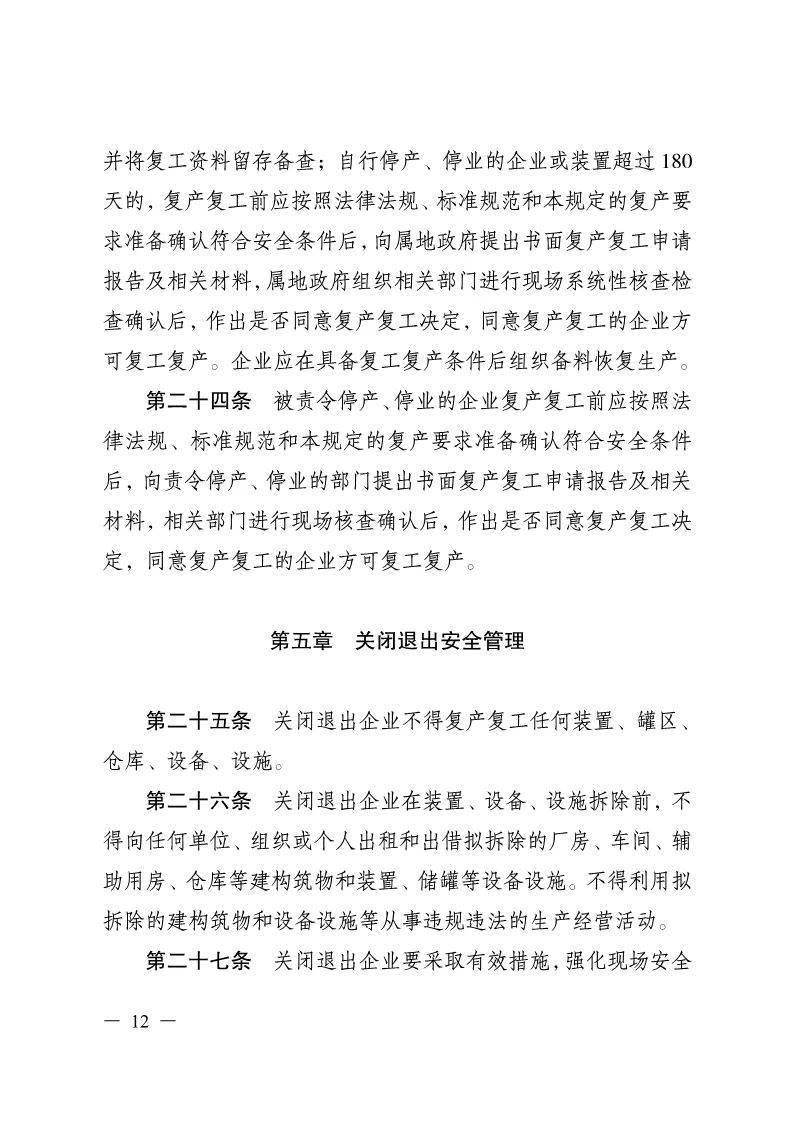 不仅编制专项方案、专家充分论证、风险评估好而检查、各类行政审批、变更手续齐全有效……一样都不能少。自行停产、停业的企业或装置超过 180天的,还需向属地政府提出书面复产复工申请报告及相关材料;被责令停产、停业的企业要复产复工的,需向责令停产、停业的部门提出书面复产复工申请报告及相关材料,经相关部门现场核查确认后方可复工复产。