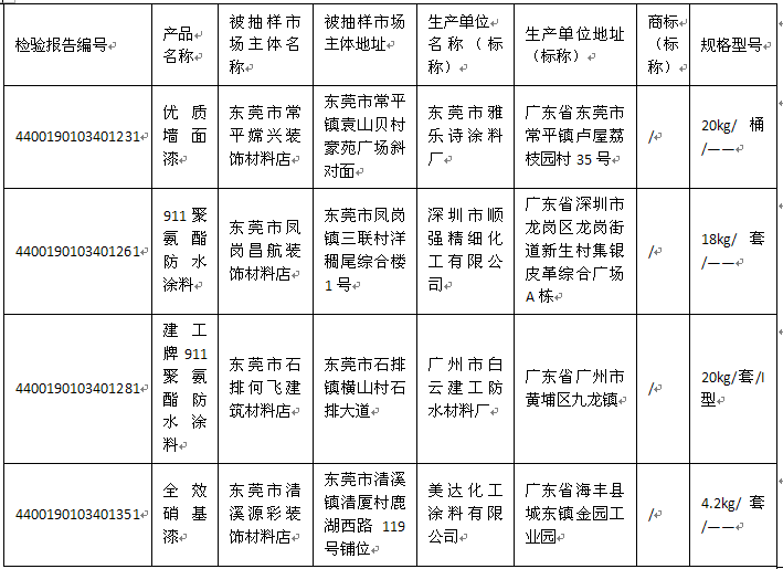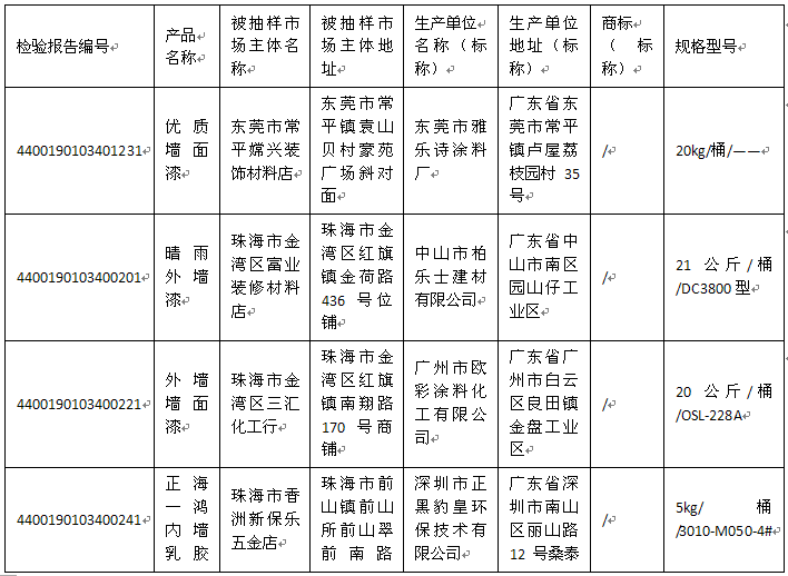 近日,根据《中华人民共和国产品质量法》《广东省产品质量监督条例》等相关规定,广东省市场监督管理局开展了广东省涂料、胶粘剂产品质量监督抽查,抽检任务由广东产品质量监督检验研究院承担。现将有关情况通告如下:
