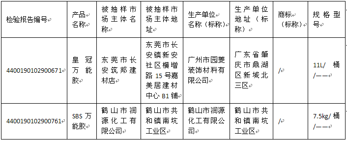 本次共对69家企业生产的80款胶粘剂产品开展了监督抽查,涉及我省广州、深圳、珠海、佛山、韶关、惠州、东莞、中山、江门、肇庆等10个地市以及广西、江苏、上海等3个省(自治区、直辖市)。经检验,发现4家企业生产的4款产品不合格。不合格项目主要有“游离甲醛”“二氯甲烷”“总卤代烃(含1,2-二氯乙烷、二氯甲烷、1,1,1-三氯乙烷、1,1,2-三氯乙烷)”等。