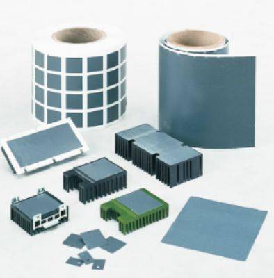 片状导热填充材料通常被称为导热硅胶片、导热硅胶垫等,具有优秀的导热能力、绝缘性、柔韧性等,是一款专门利用填补空隙来传递热量的产品,能够完美填充散热件和发热件之间的空隙,提高热传递效率。片状导热间隙填充材料可应用在各种元器件表面与散热器,外壳等之间起导热、绝缘、粘接、防震等作用。该类产品可任意裁切,利于满足自动化生产和产品维护。有些产品通过加玻璃纤维网、表面金属层等方式来增加其机械强度及可操作性,还有导热胶带等具有粘接等附加功能的产品。