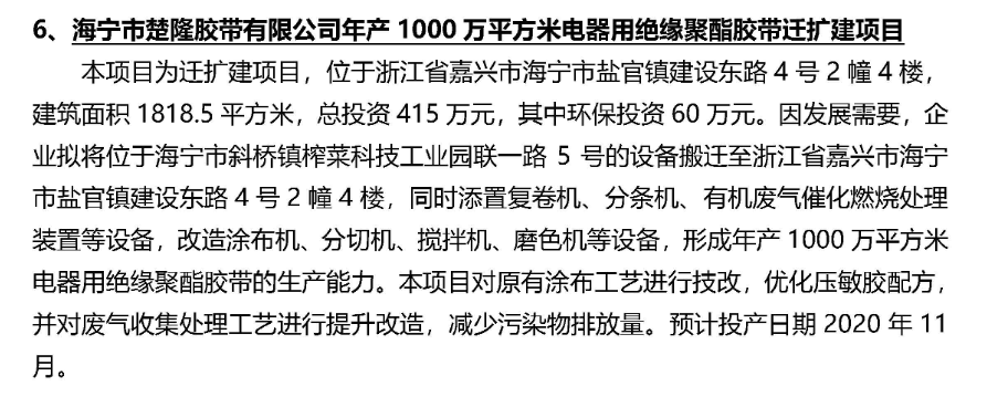 年产1000万平方米电器用绝缘聚酯胶带扩建项目