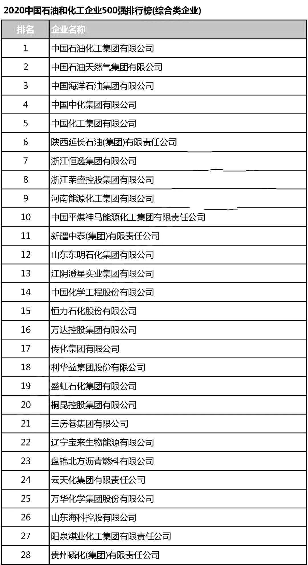 2020中国石油和化工企业500强榜单是根据企业提供的2019年度主营业务收入和上市公司公开的数据,经中国石油和化工企业500强工作委员会调查、核实和计算,依据年度收入排序的国际惯例,产生了2020中国石油和化工企业500强排行榜。
