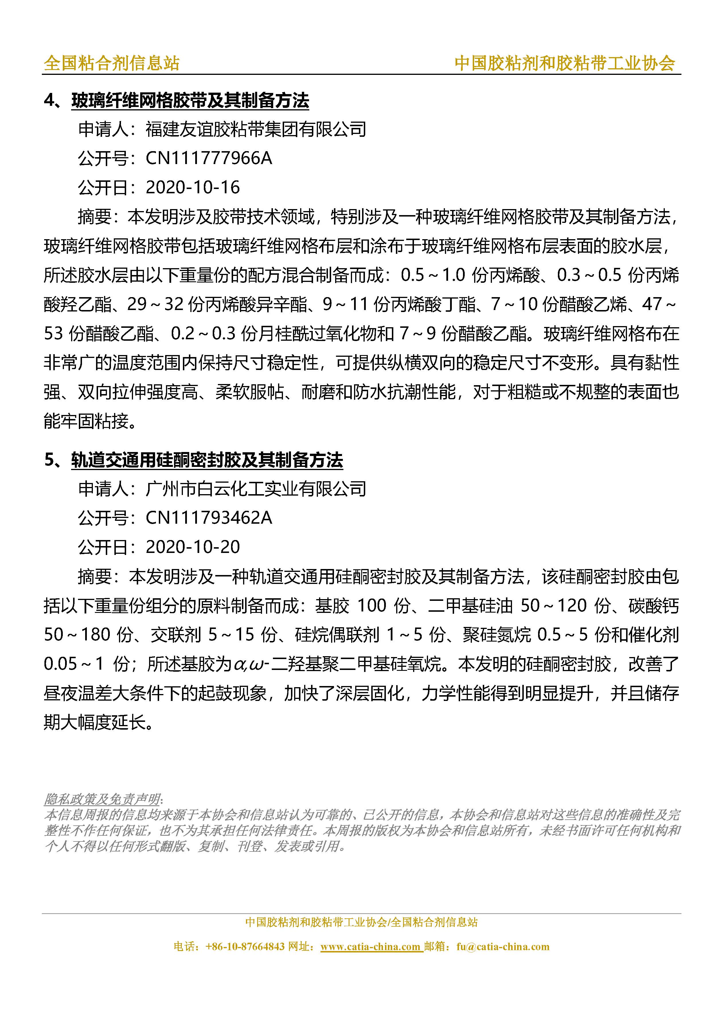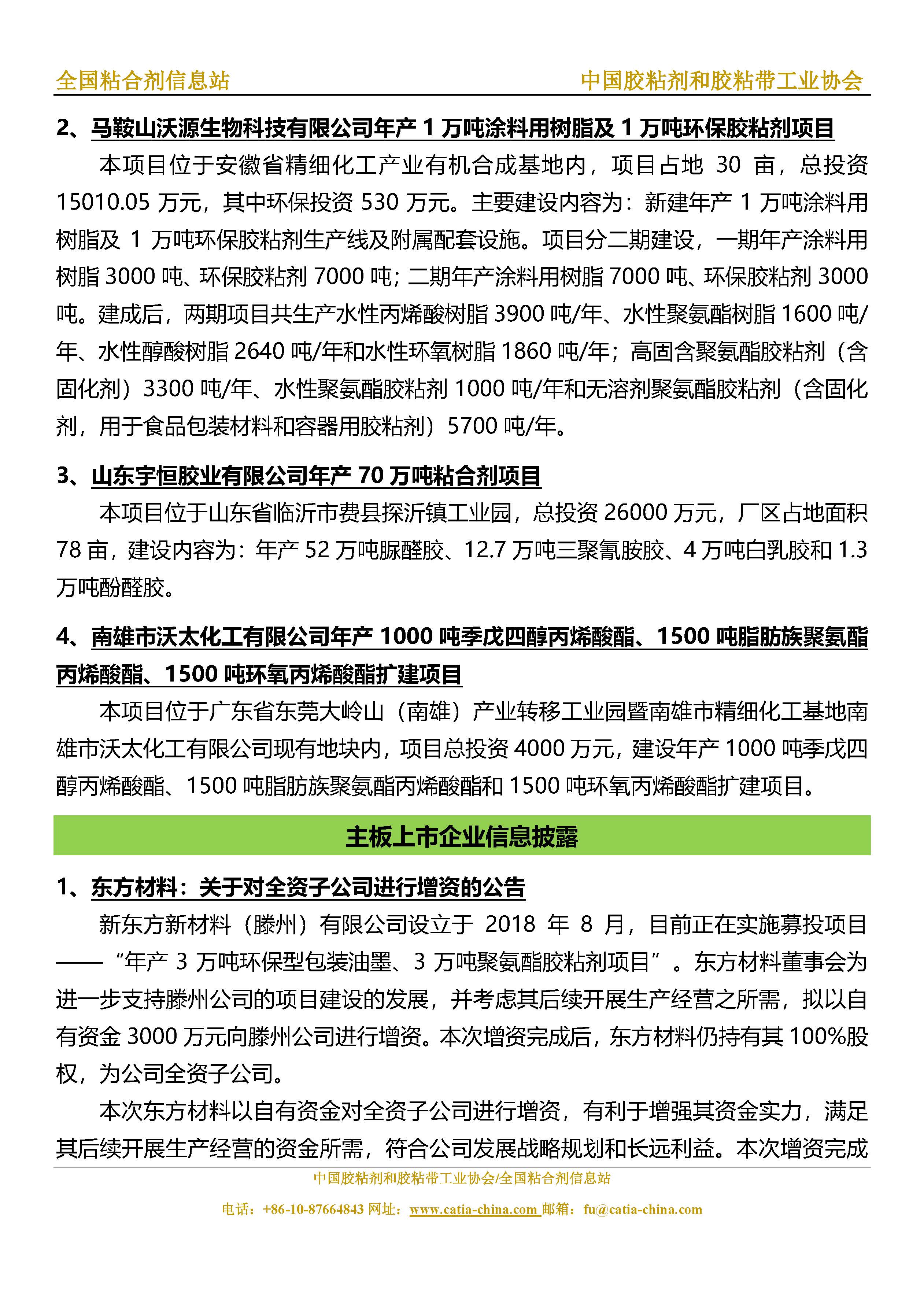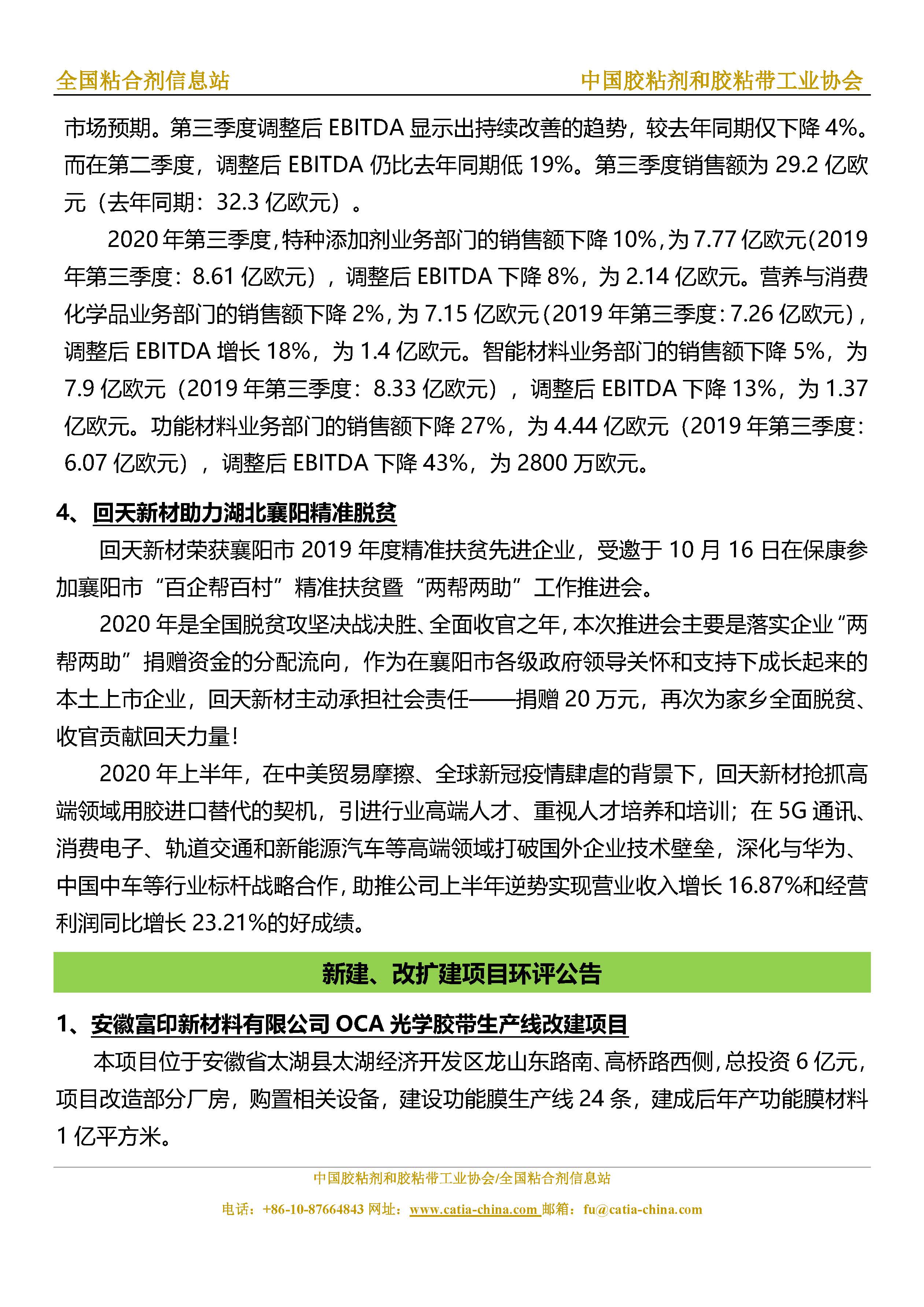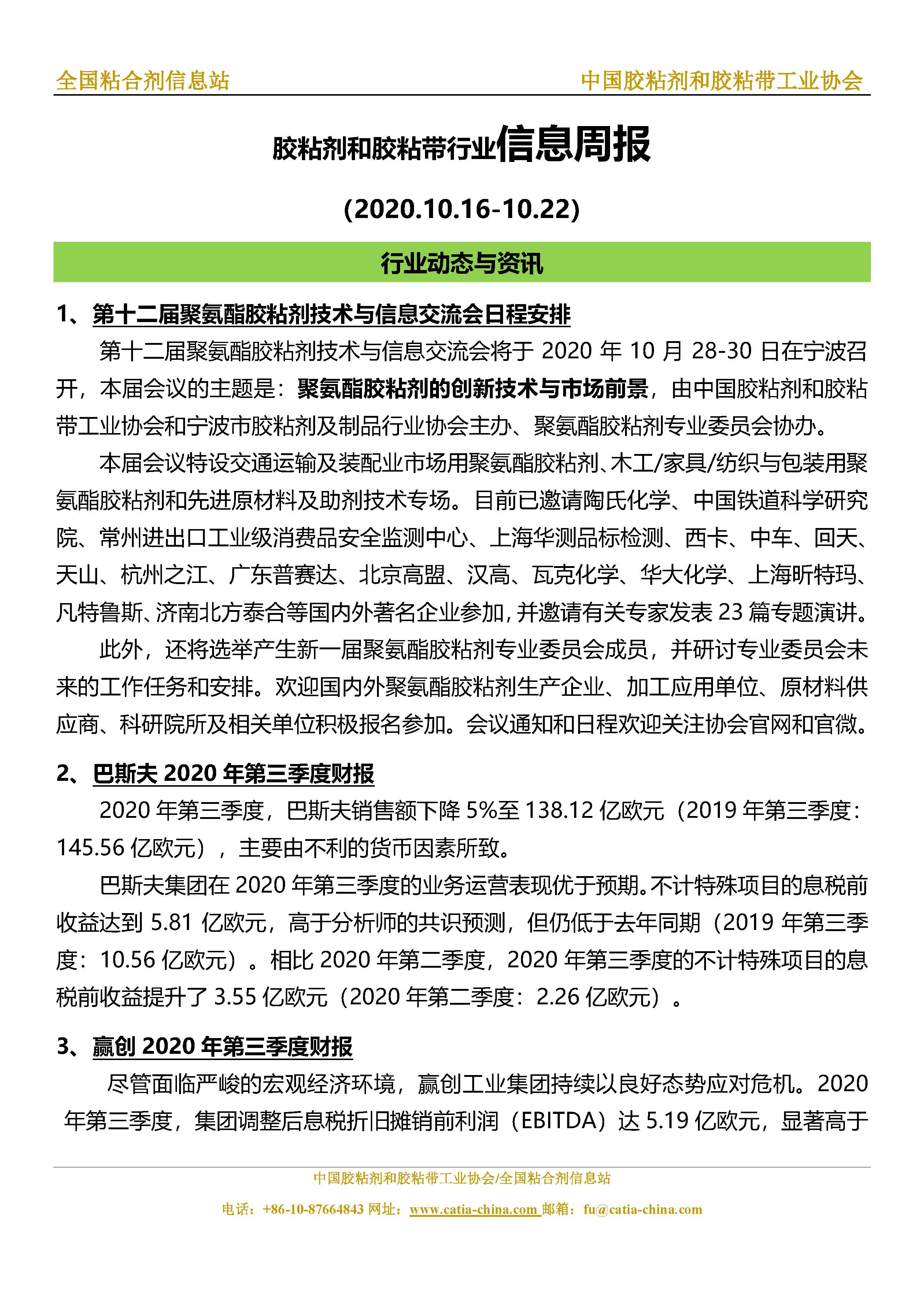 胶粘剂和胶粘带行业信息周报 (2020.10.16-10.22)