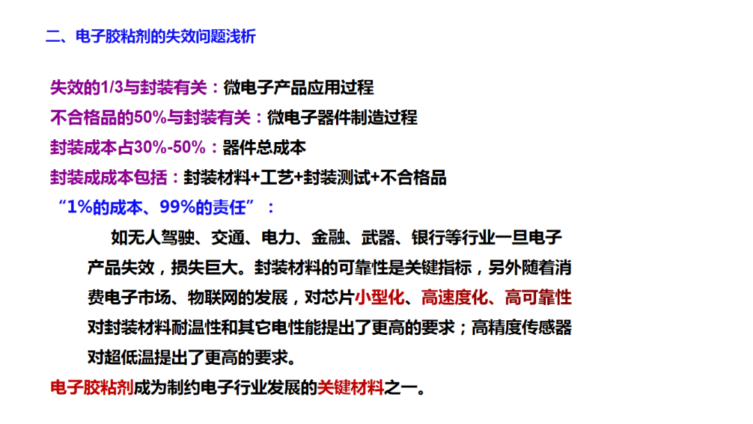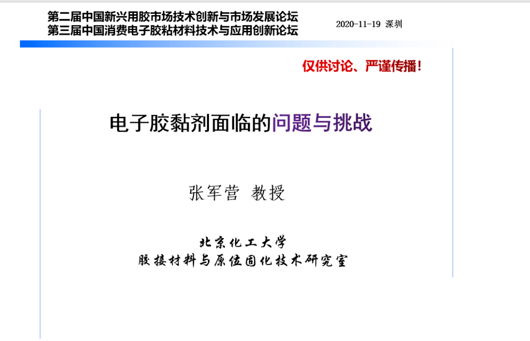 张军营教授在本次深圳新兴用胶市场论坛上将专门分享重磅级的研究报告《 电子胶黏剂面临的问题与挑战》,其报告内容的核心纲要如下(附若干PPT页面供参考):