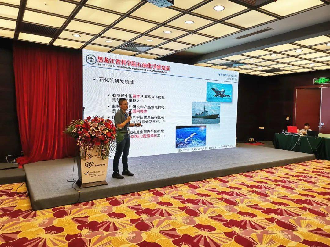 黑龙江省科学院石油化学研究院刘长威博士作了题为《耐高温含酰亚胺环结构树脂体系构建及在结构/功能胶粘剂方面的应用优势》的报告
