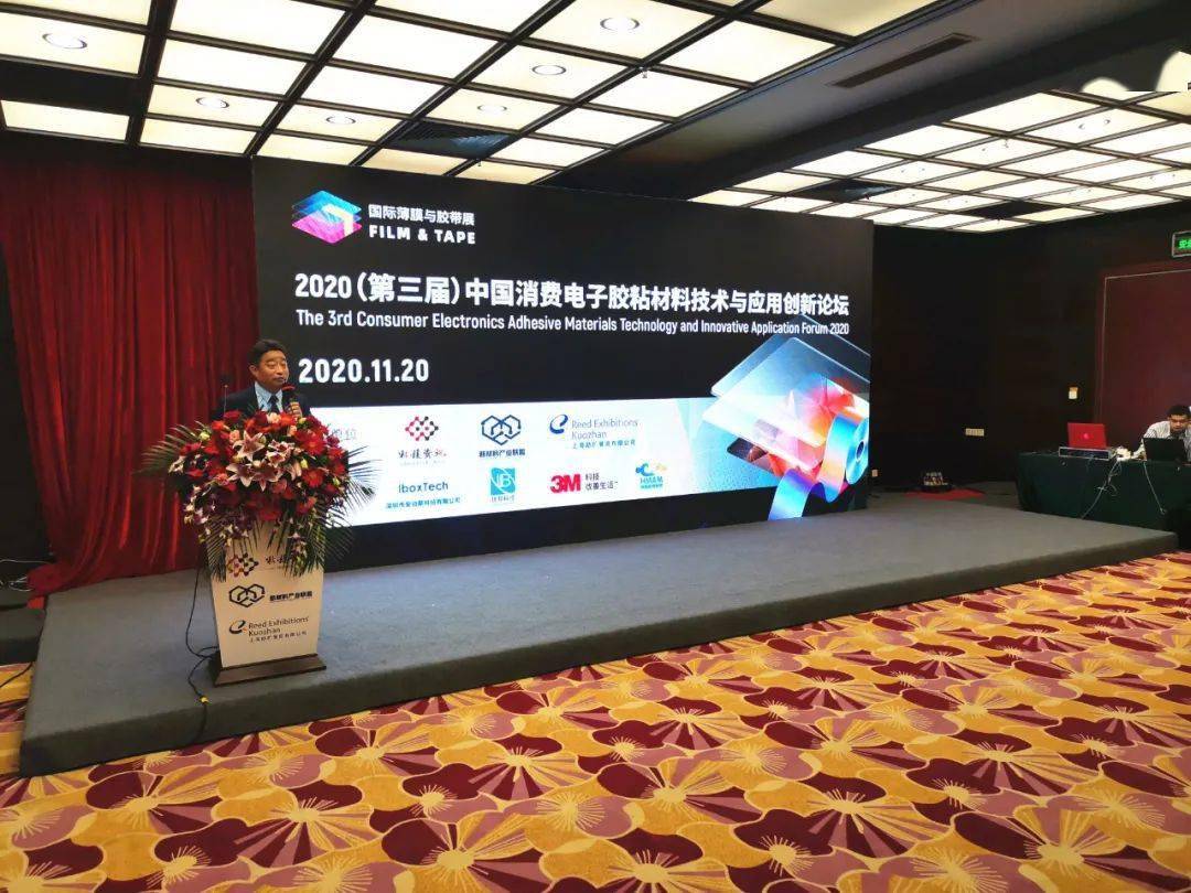 2020年11月20日,由粘接资讯、新材料产业联盟、 2020深圳国际薄膜与胶带展等单位携手主办的 “2020第三届中国消费电子胶粘材料技术与应用创新论坛”在深圳福田会展中心成功召开。 本次活动旨在拥抱5G与新基建机遇,深入推动中国消费电子用胶市场技术创新、高效发展,来自国内外消费电子用胶领域生产企业、终端应用、科研院校的240余名行业专家和精英代表汇聚一堂,就消费电子用胶行业新市场、新技术、新应用等话题展开深入探讨和交流。