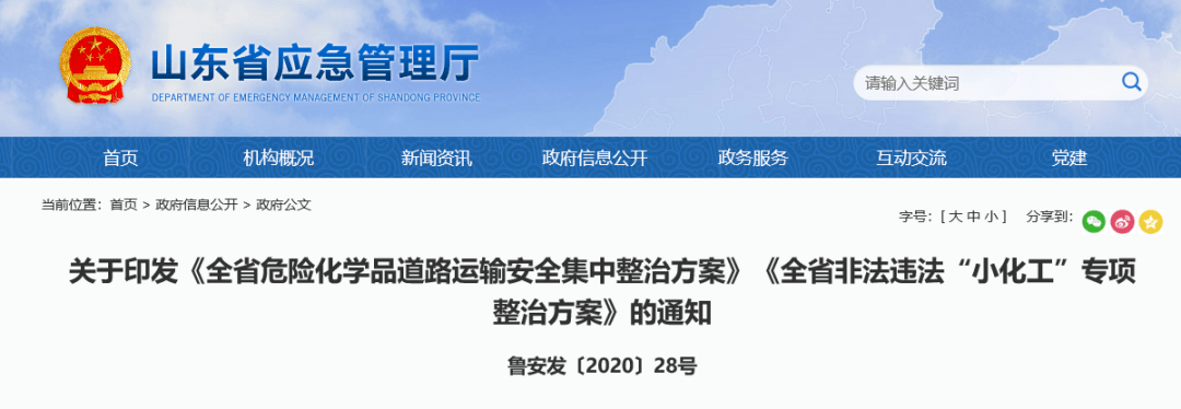 山东省决定在全省范围内开展 为期一年的非法违法生产、储存化工产品(危险化学品)及使用化工产品(危险化学品)非法违法从事生产经营活动的小化工、小作坊、黑窝点(以下统称非法违法“小化工”)专项整治。