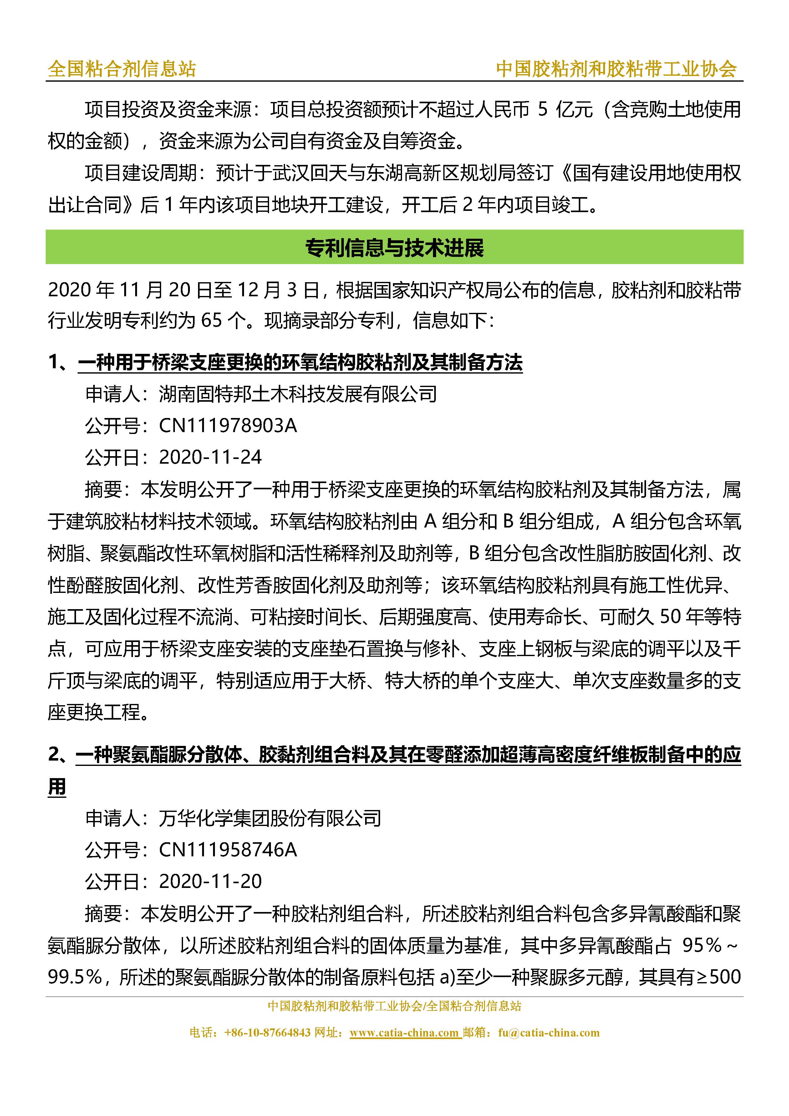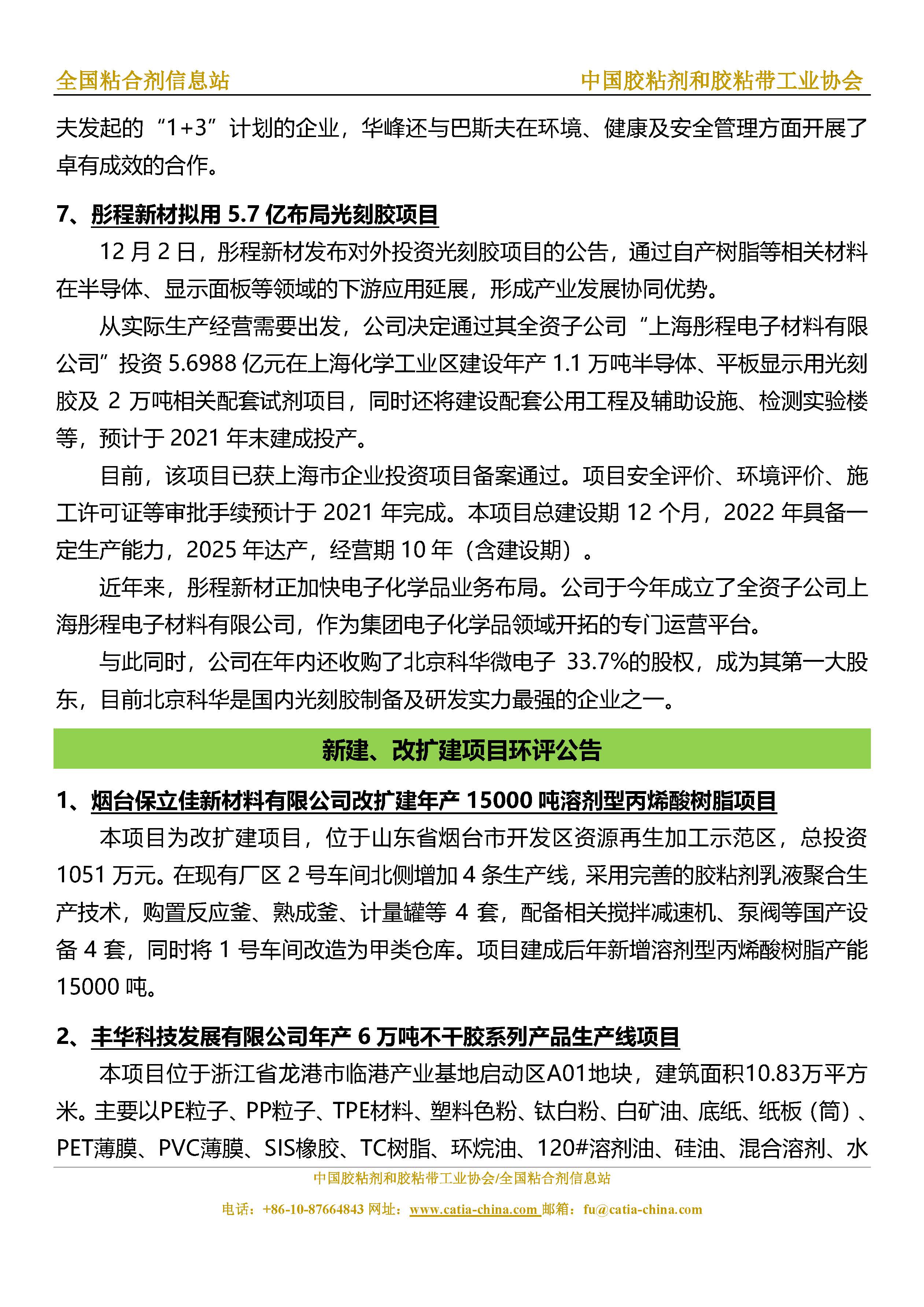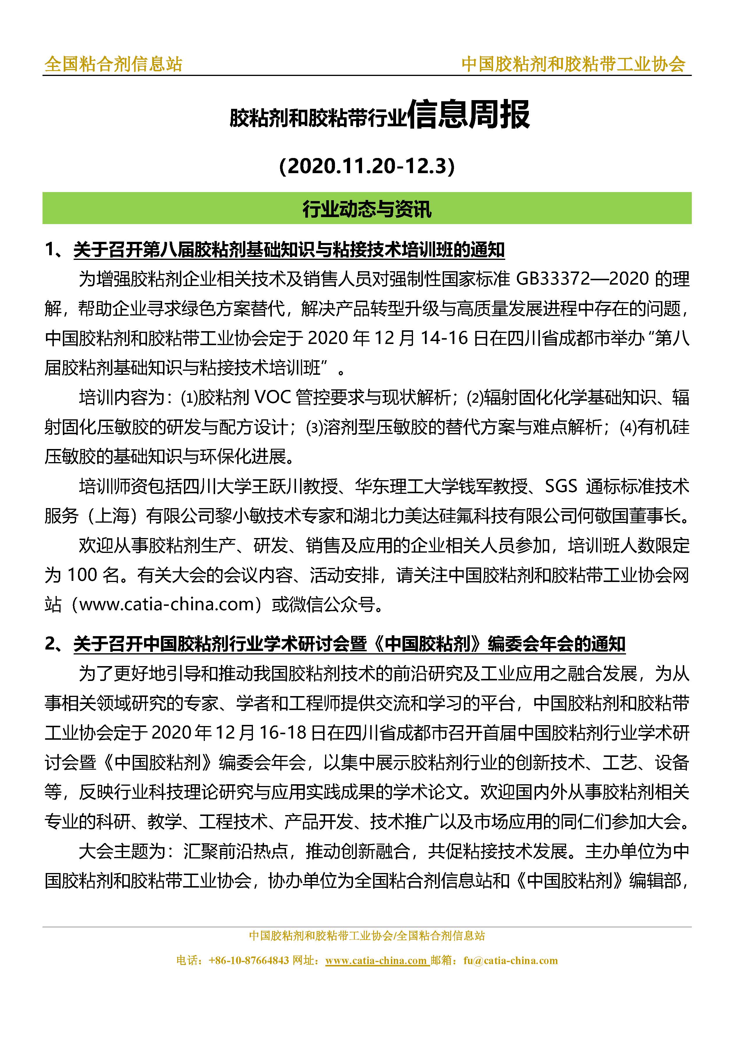 胶粘剂和胶粘带行业信息周报 (2020.11.20-12.3)