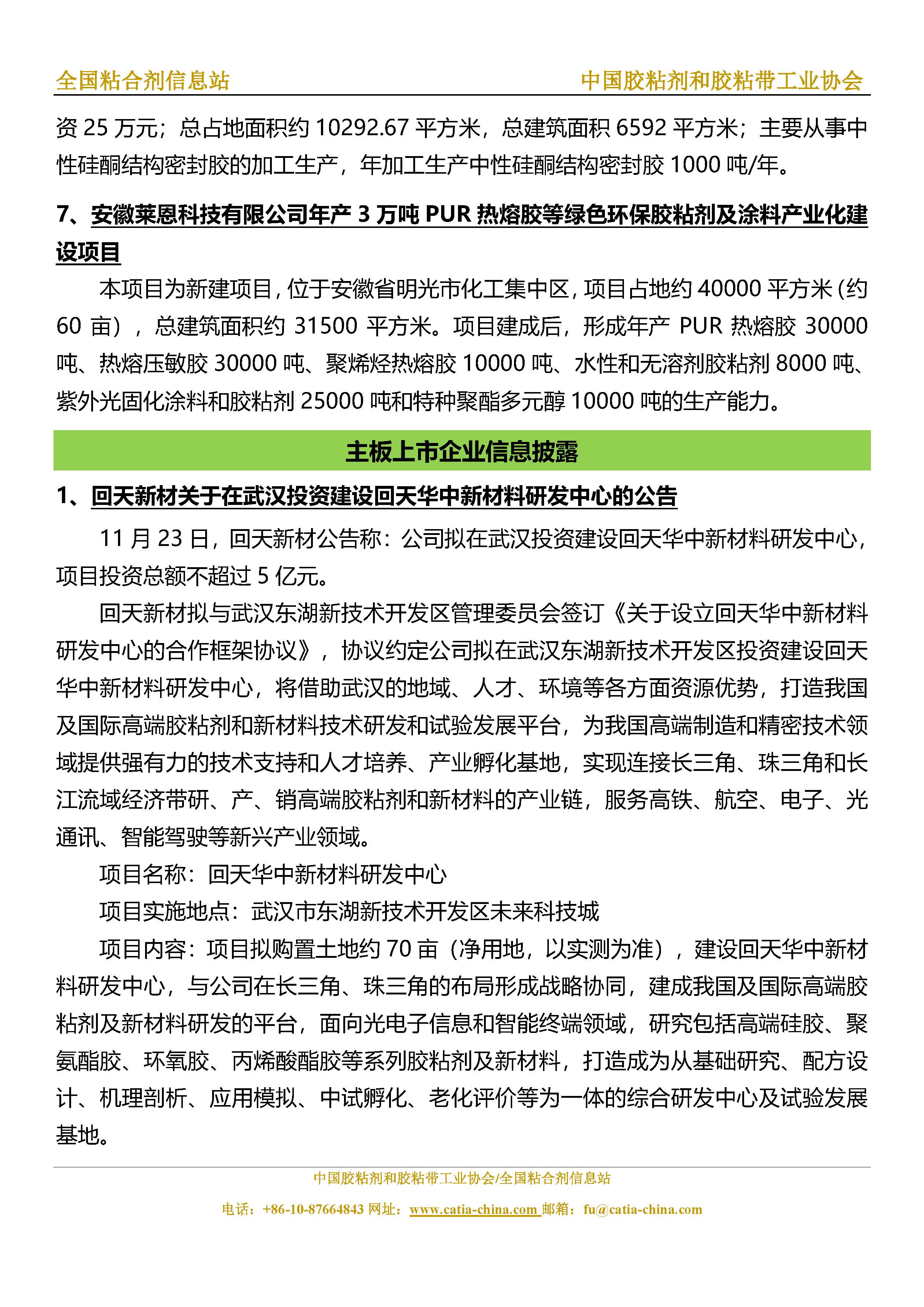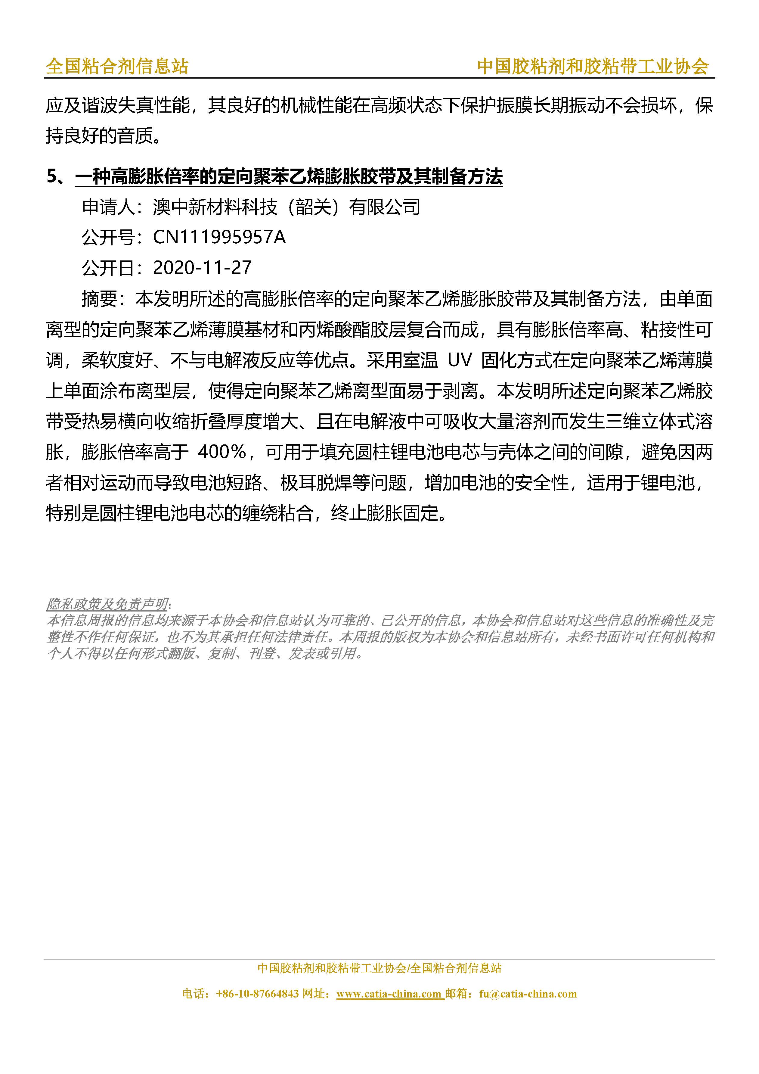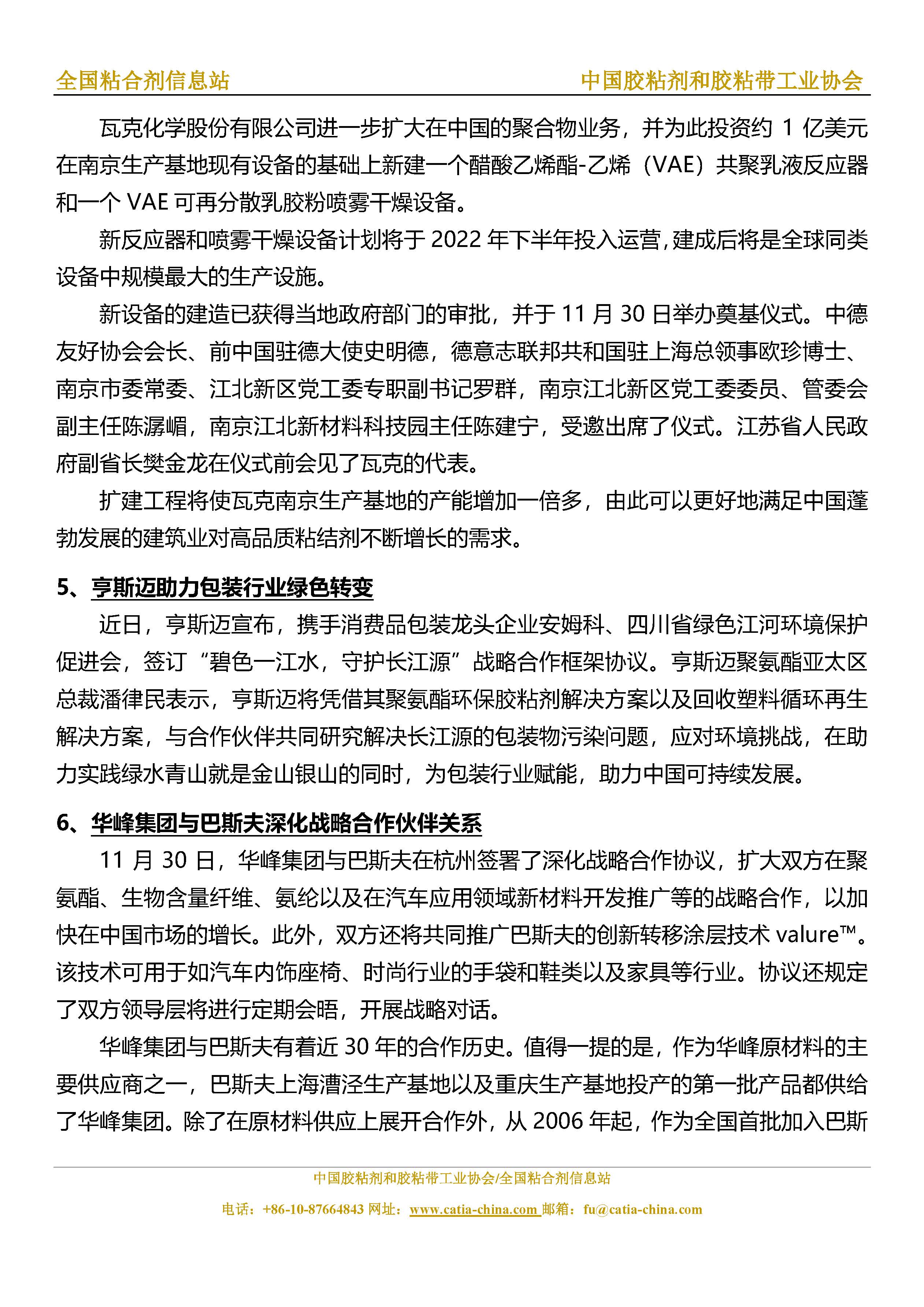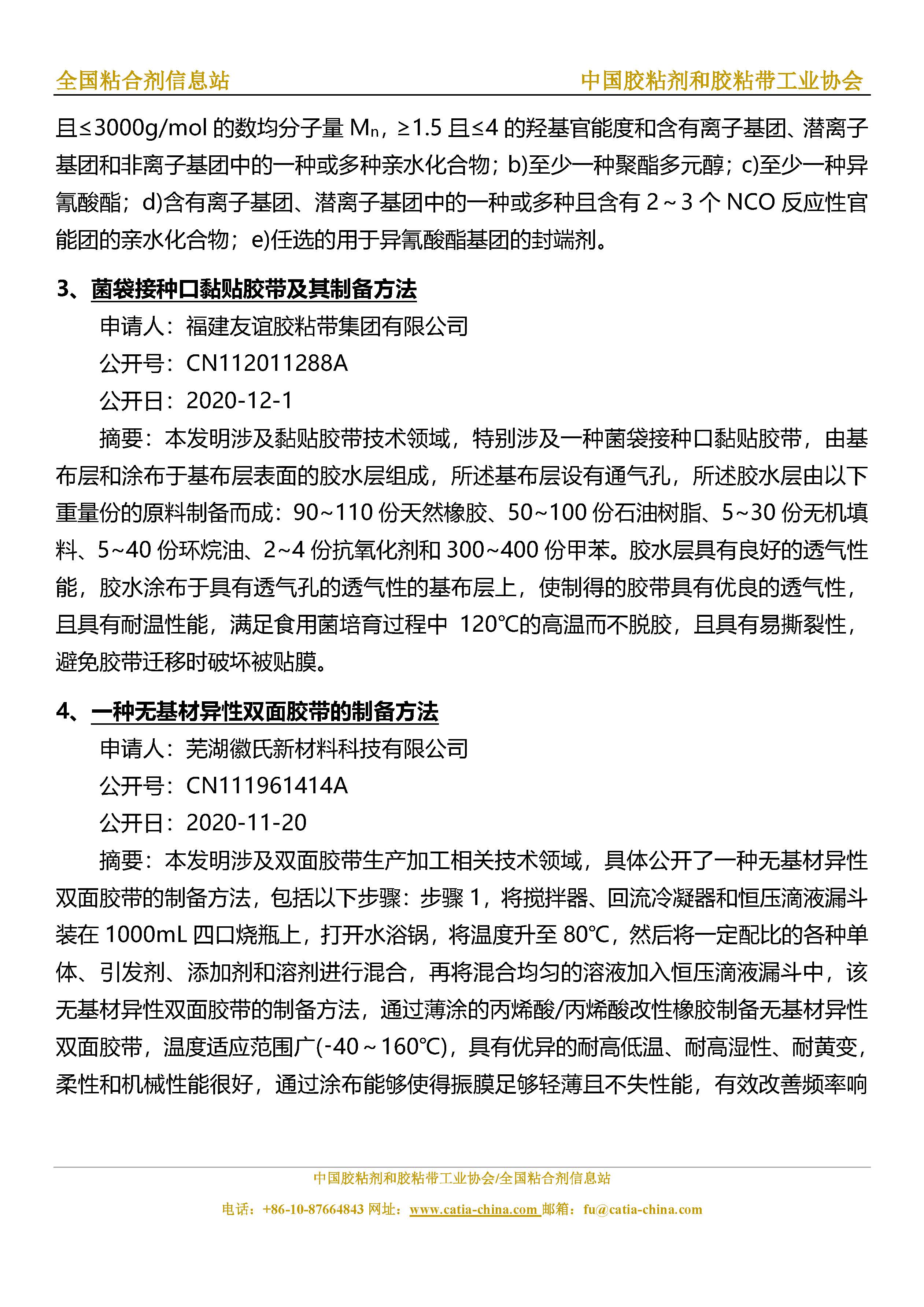 胶粘剂和胶粘带行业信息周报 (2020.11.20-12.3)