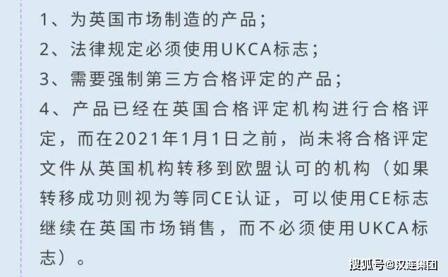 2021年1月1日之后,符合以下所有条件的产品需要立即使用新的UKCA标志。