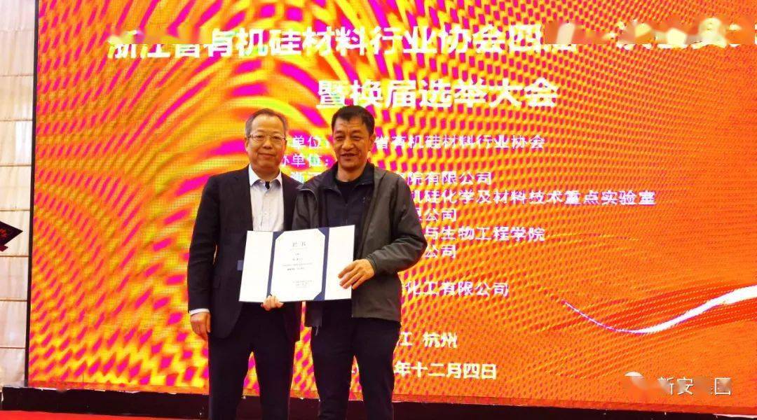 12月4日,浙江省有机硅材料行业协会召开了四届一次会员大会,本次大会有60家会员单位68名代表出席,经24家理事单位无记名投票选举,新安集团董事长吴建华全票当选新一届理事长。