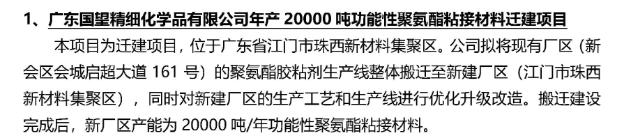 年产2万吨功能性聚氨酯粘接材料项目