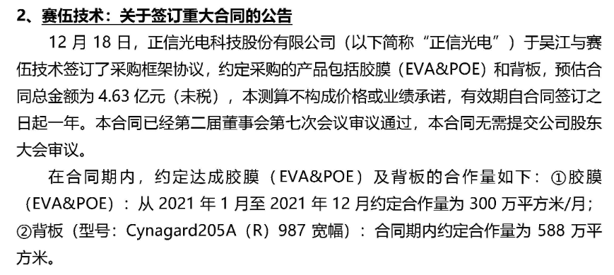 赛伍技术:关于签订重大合同的公告