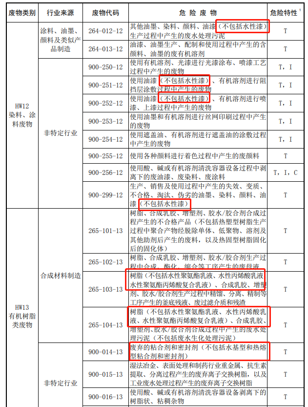 据了解,在最新《国家危险废物名录(2021年版)》中,“HW12染料、涂料废物” 类别内“(不包括水性漆)”的描述多次出现(见下图),对此有业内人士将其描述为“水性涂料被新版《国家危险废物名录》"除名"。