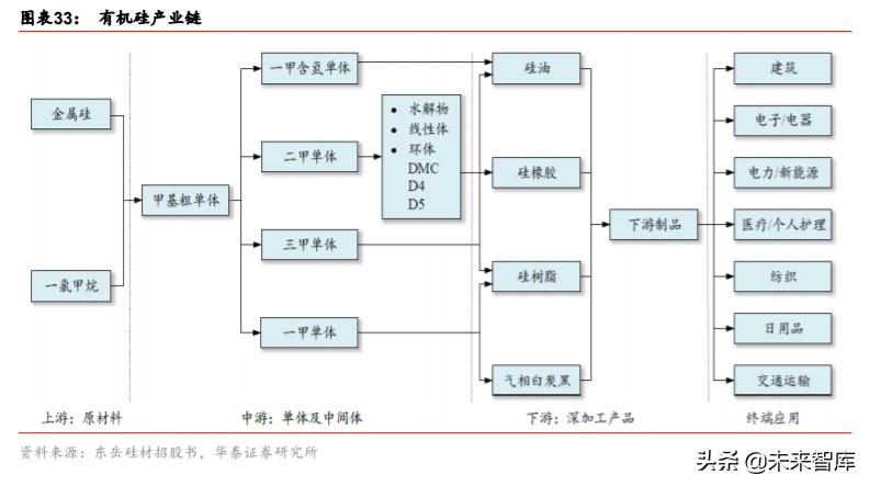 原材料价格波动大,毛利率敏感度高。以应用范围最广的有机硅密封胶为例,根据硅宝科 技招股说明书,有机硅密封胶主要原材料为 107 基胶(羟基封端的聚二甲基硅氧烷)、201 甲基硅油及碳酸钙,合计占营业成本 84%,其中 107 硅橡胶和 201 甲基硅油分别占比 62%/14%,其均为有机硅产业链的深加工产品,剩余 8%为碳酸钙成本。而有机硅中间体 DMC(二甲基环硅氧烷混合物)或 D4(八甲基环四硅氧烷)等是制造 107 胶的主要材料, 市场上通常以 DMC 价格每吨加价 1,000 元左右作为 107 硅橡胶的表征价格,近几年我国 有机硅室温胶平均价格与 DMC 平均价格变化趋势基本一致,但由于密封胶下游多为大型 建筑幕墙工程企业和集装箱企业等,价格调节频次较低相对稳定,密封胶企业毛利率对 DMC 价格较为敏感。