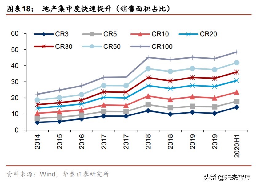 下游房地产及建筑幕墙行业加快推进集采模式,密封胶龙头品牌力显现。根据 Wind 数据, TOP100 房地产企业销售面积市占率已从 2014 年的 22%提升至 2019 年的 44%,20 年上 半年提升至 48%。随着下游房地产企业集中度和精装修比例的提升,集采模式越来越受到 地产商的青睐。目前,防水、管材、瓷砖、涂料、木门、五金等多个建筑材料产品均已实 现了房地产企业集中采购。