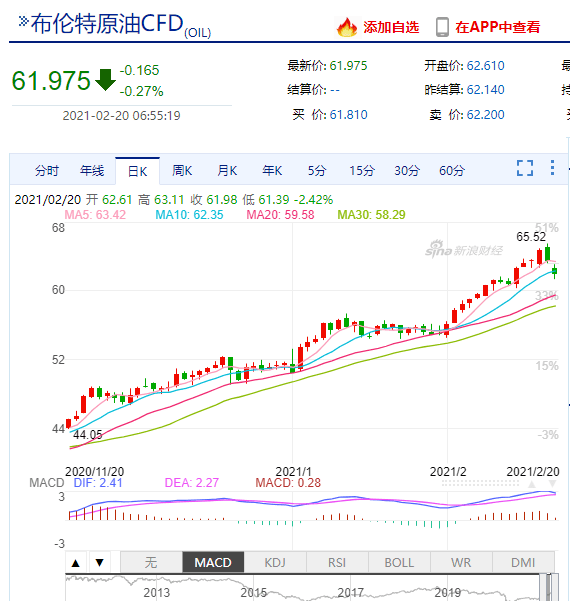 由于南方的极端寒冷导致数百万桶炼油产能停产,原油期货价格持续攀升,原油突破60美元,刷新去年1月8日以来的最高水平。