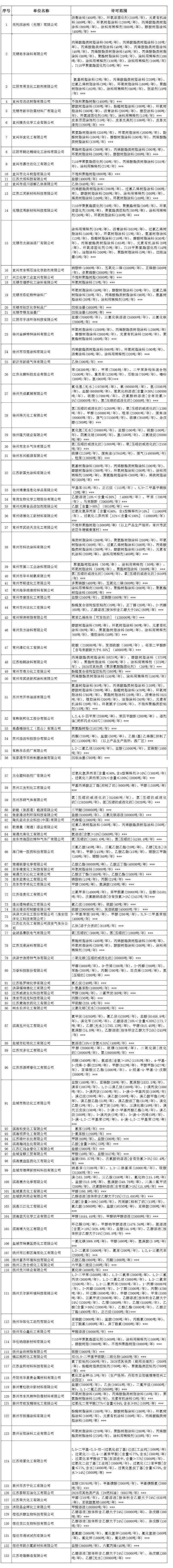 近日,江苏省应急管理厅发布公告称:根据各设区市应急管理局核实并上报,尚利派涂料(无锡)有限公司等133家危险化学品生产企业,终止危险化学品生产活动。根据《危险化学品生产企业安全生产许可证实施办法》第四十条规定,注销上述企业《危险化学品生产企业安全生产许可证》,现予公告。