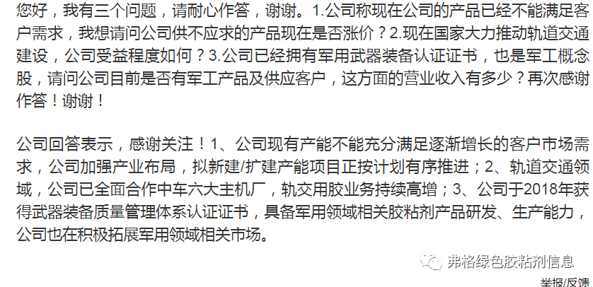 回天新材在高端领域不断渗透加速,产品逐步认证放量。5G通信电子、轨道交通和新能源用胶作为公司的重点主攻市场,该部分市场具有高成长、高潜力和高附加值的特点。据回天新材介绍,公司为高铁、城轨、地铁等轨道交通车辆提供安全、可靠的胶粘剂新材料产品解决方案,已全面合作中车六大主机厂,轨道交通用胶增长屡创新高。