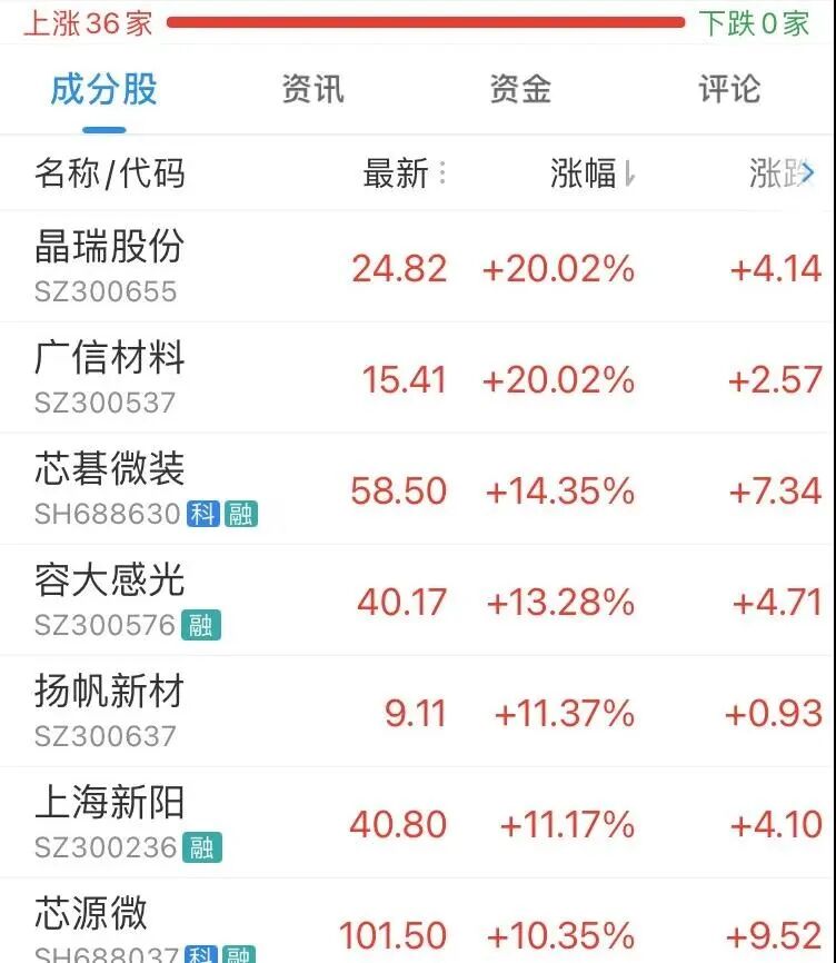 截止今日收盘,光刻胶板块涨幅达到6.84%。板块中广信材料、晶瑞股份涨幅达到20.02%。芯碁微装、容大感光、扬帆新材、上海新阳、芯源微、格林达涨超10%。