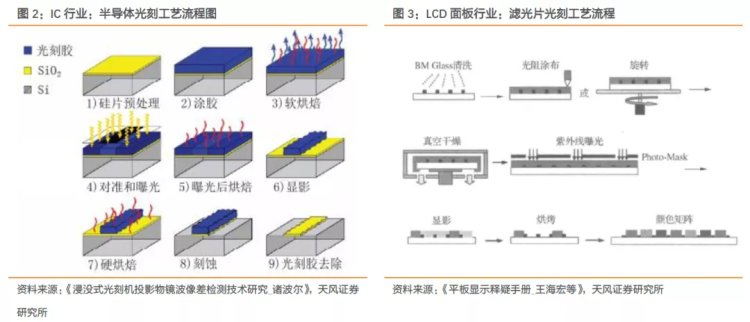 具体来说,光刻机是采用类似照片冲印的技术,把掩膜版上的精细图形通过光线的曝光印制到硅片上,而光刻胶则是涂抹在硅片上,帮助光刻机把电路在硅片上刻蚀出来的关键材料。