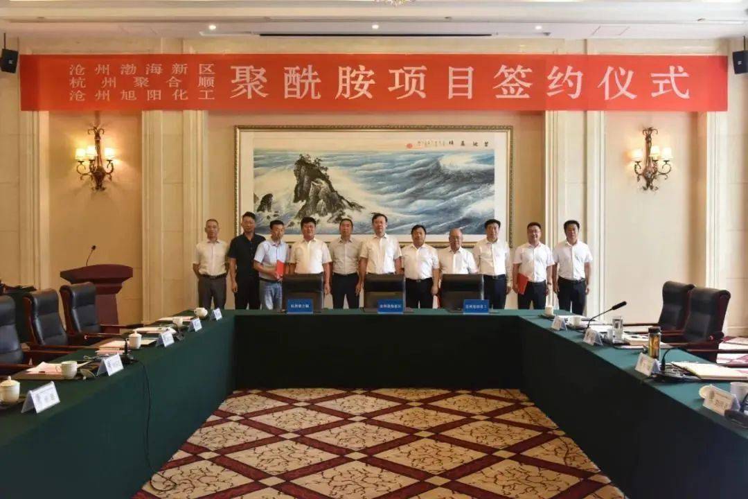 8月13日, 沧州渤海新区与杭州聚合顺新材料股份有限公司、沧州旭阳化工有限公司签署战略协议,三方将合作建设“年产60万吨聚酰胺项目”。沧州渤海新区党工委书记、管委会主任李华峰,杭州聚合顺新材料股份有限公司董事长傅昌宝,沧州旭阳化工有限公司董事长潘九海出席签约仪式。沧州渤海新区党工委副书记、管委会常务副主任刘明亮主持签约仪式。