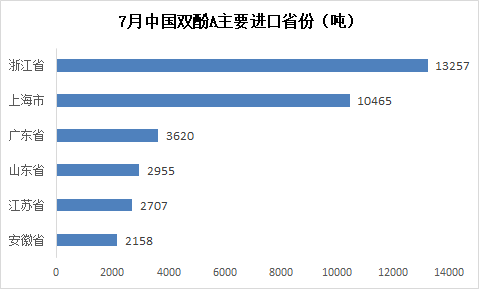 中国双酚A进口主要集中在华东的浙江和上海,占全国的66%以上。