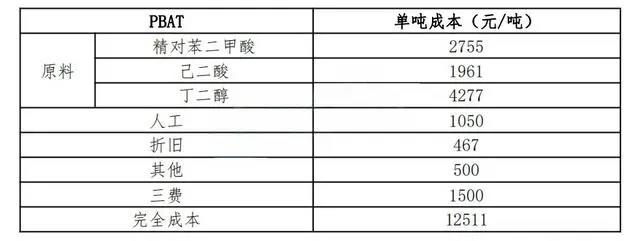 PLA和PBAT成本相对较低