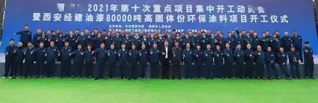 10月26日,西安经建油漆有限责任公司80000吨高固体份环保涂料项目正式开工,总投资和年度计划投资均为1.1亿元,预计2022年8月竣工,项目建成投产后,亩均产值可达到1000万元,是目前中国中西部产能最大、最先进的环保涂料制造基地。