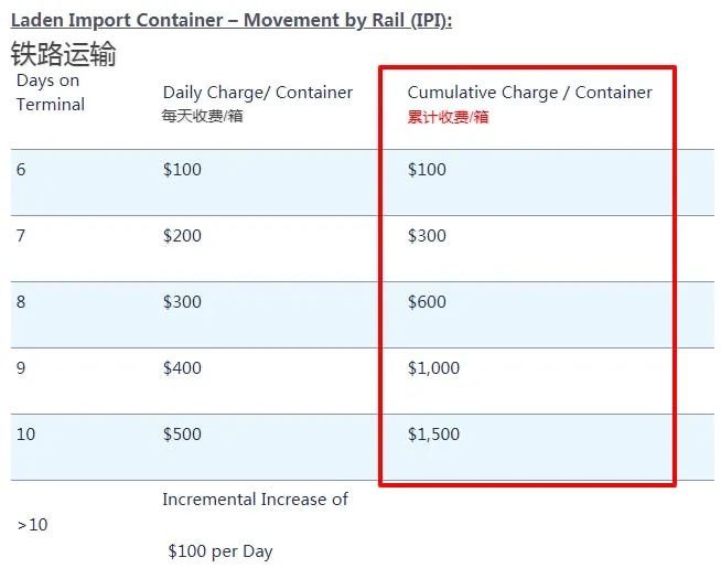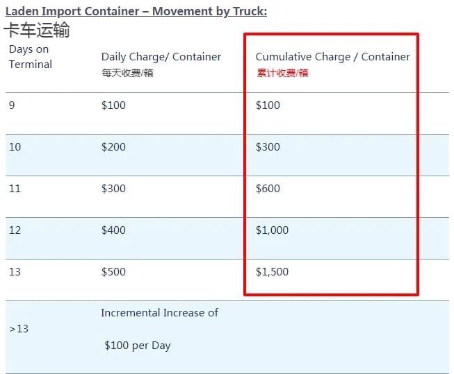 对于卡车运输的集装箱,如果在码头的停留时间超过8天(包括8天),将向船公司收取附加费;对于铁路运输的集装箱,超过5天(包括5天),即向船公司收取附加费。