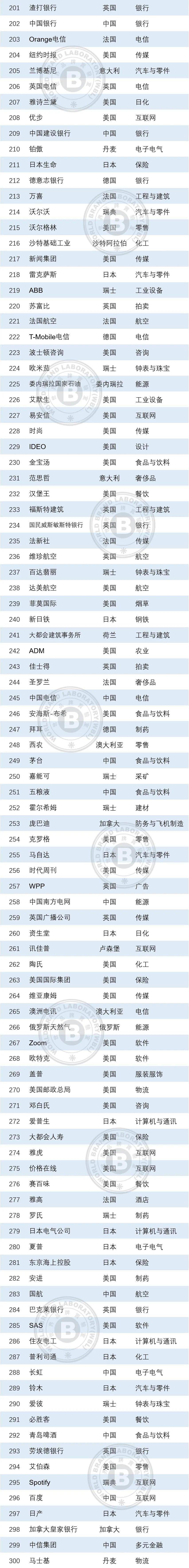 2021年《世界品牌500强》入选国家和行业