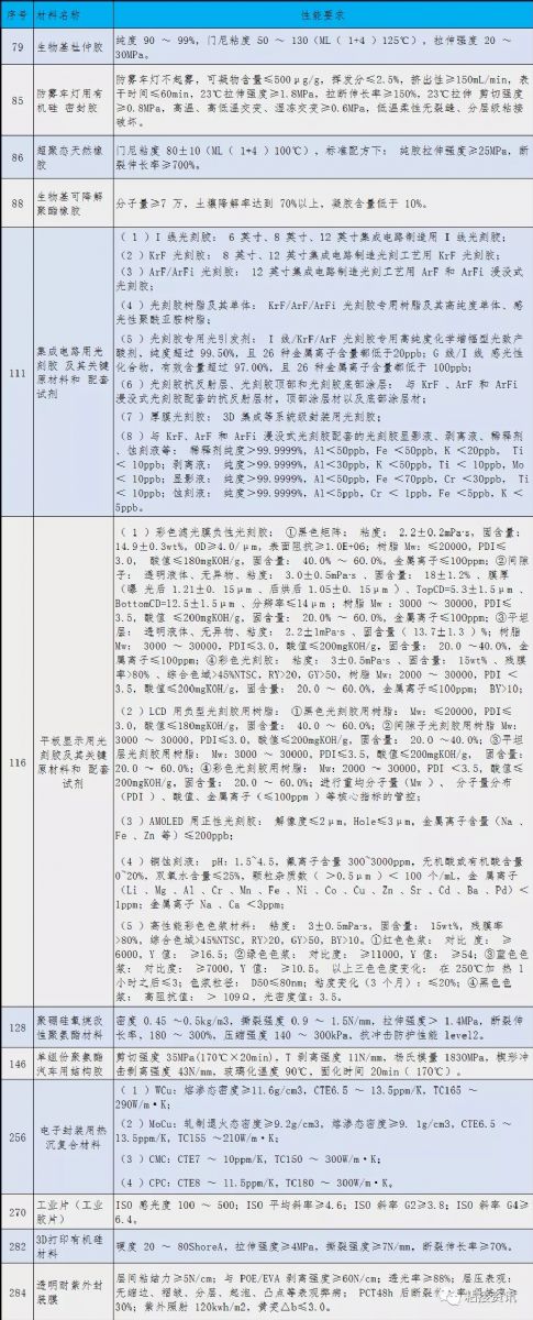 其中,先进化工材料包括:特种橡胶及其他高分子材料、工程塑料、膜材料、电子化工新材料,以及其他先进化工材料,共69种。关键战略材料包括高性能纤维及复合材料、稀土功能材料、先进半导体材料和新型显示材料、新型能源材料共82种。