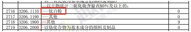 序号2716,税则号列3206.1110,货品名称---钛白粉,协定税率0;