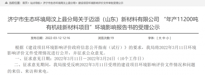 原标题:国产替代加速,投资3.2亿有机硅新材料项目环评公示