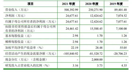 公司业绩表现的尤为亮眼,但是公司经营活动现金流量持续为负数。2018~2020年,聚和股份各报告期内经营活动现金流量净额分别为-0.54亿元、-2.07亿元、-8.15亿元,连续3年持续为负,与其净利润相悖。