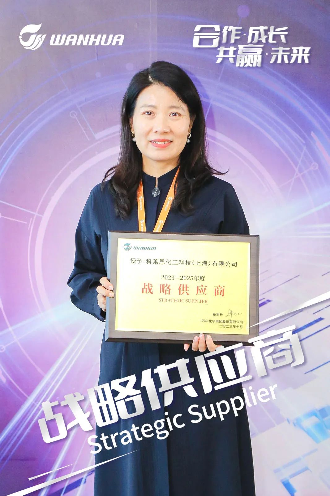 作为万华化学的重要合作伙伴,科莱恩也应邀出席并荣获了万华化学颁发的“2023-2025年度战略供应商”奖项。