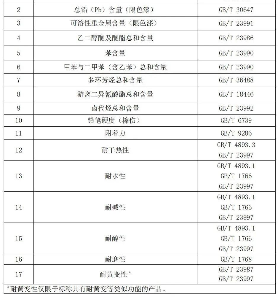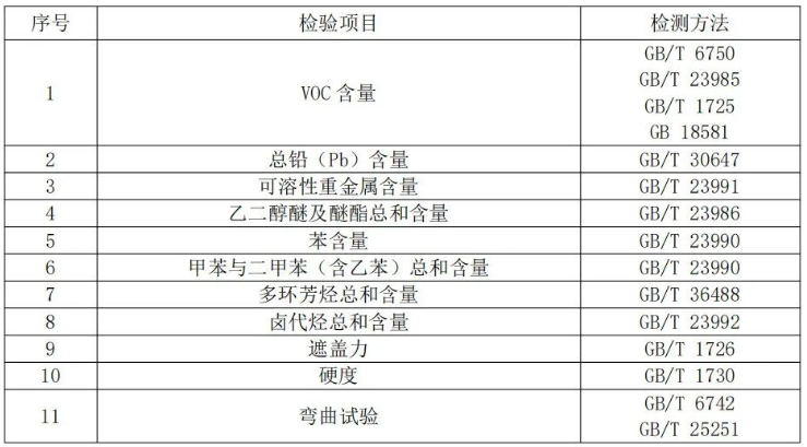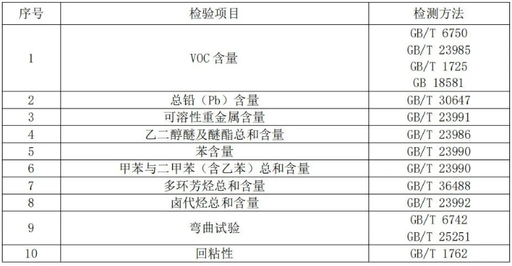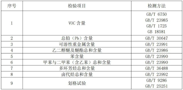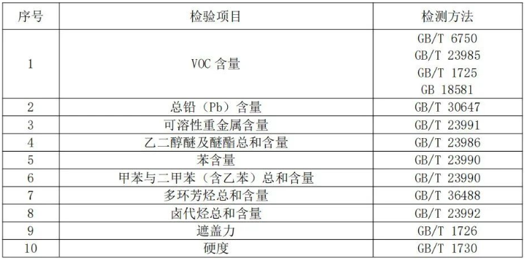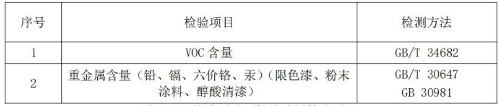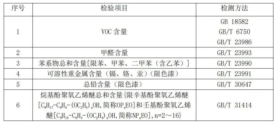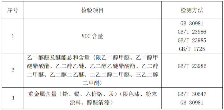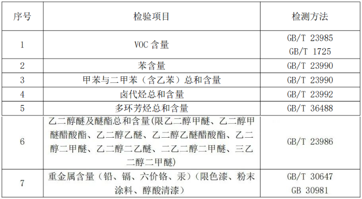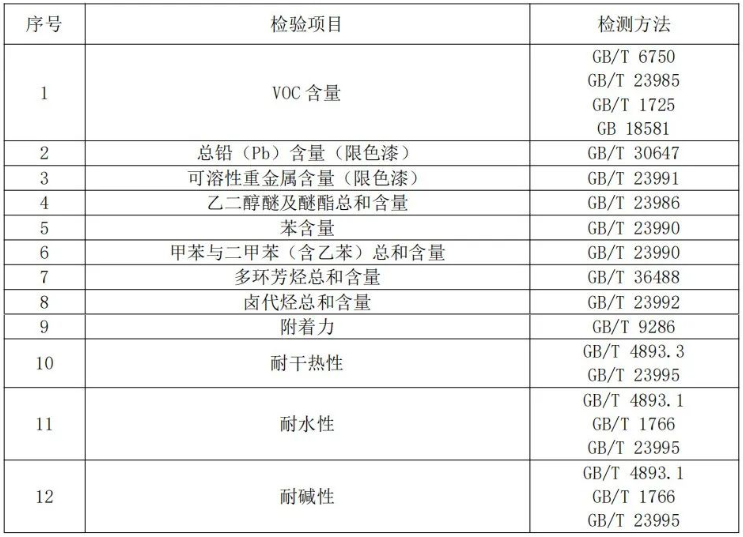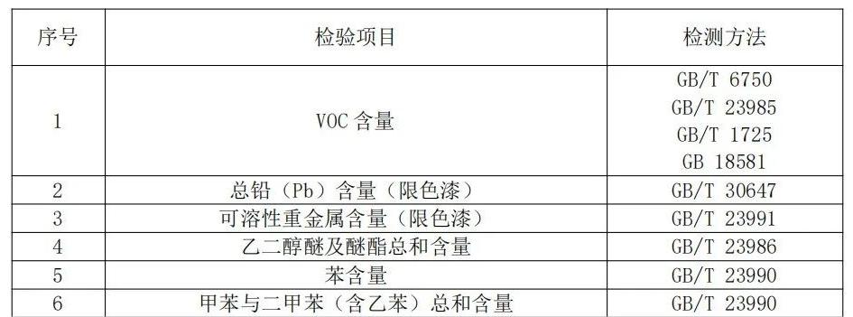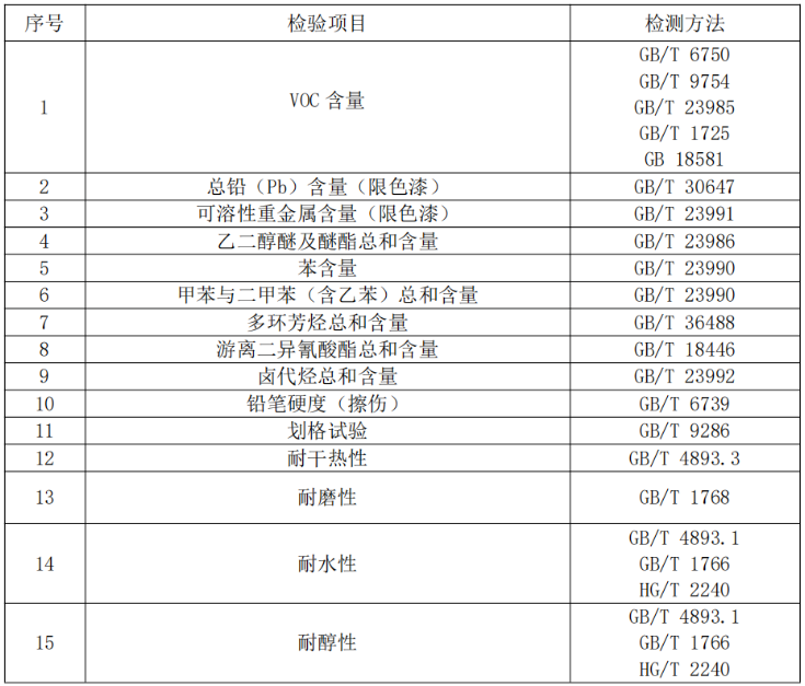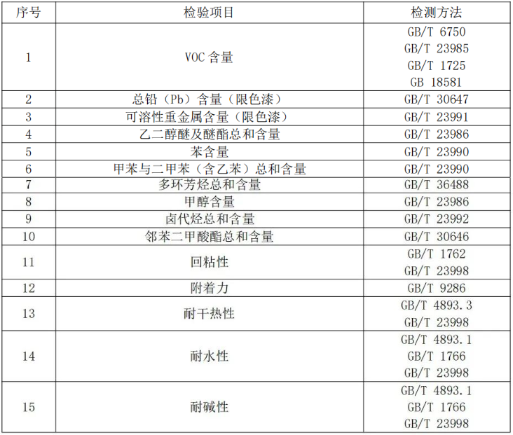 注:上表所列检验项目是有关法律法规、标准等规定的,重点涉及健康、安全、节能环保以及消费者、有关组织反映有质量问题的重要项目。