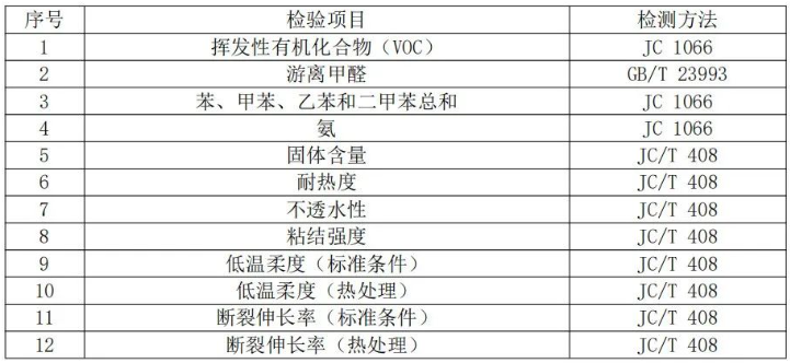 注:上表所列检验项目是有关法律法规、标准等规定的,重点涉及健康、安全、节能、环保以及消费者、有关组织反映有质量问题的重要项目.