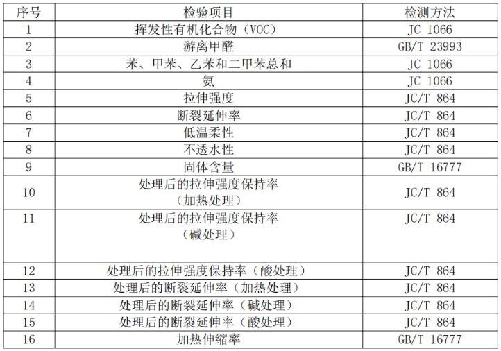 表2-16 聚合物乳液建筑防水料检验项目