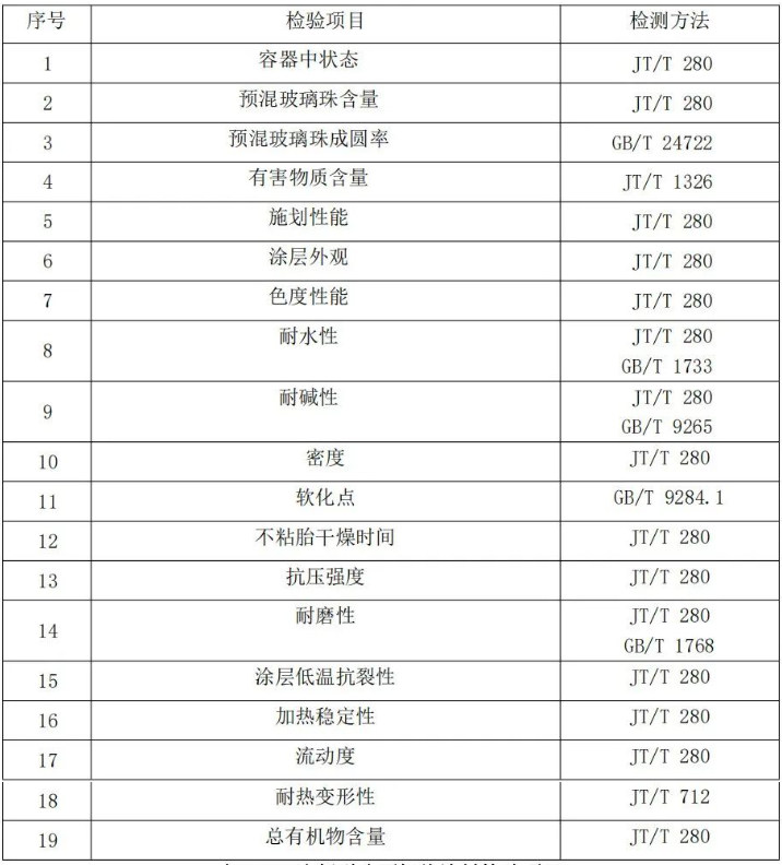 表2-23 水性路面标线涂料检验项目