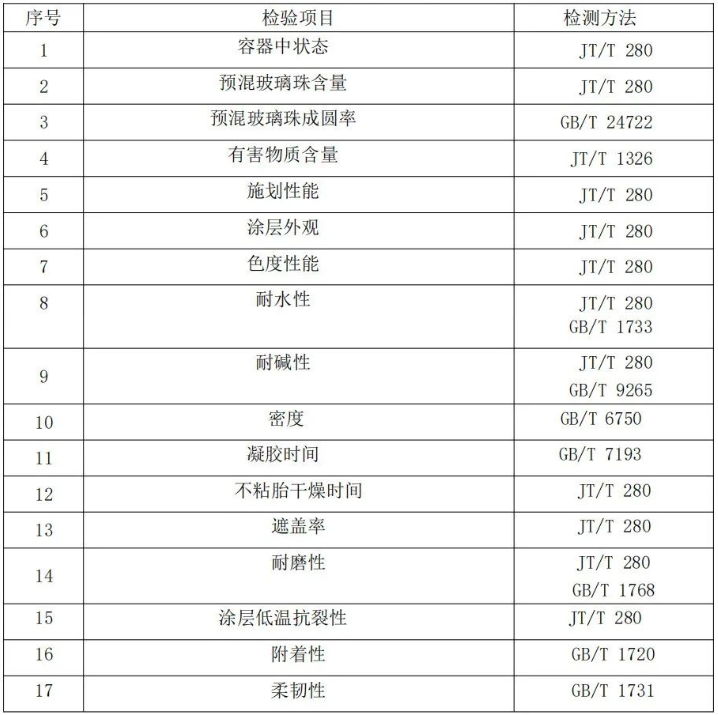 表2-22 双组份路面标线涂料检验项目