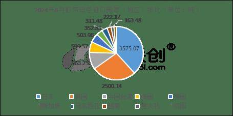 按照产销国与地区的进口量来分析。2024年6月份,中国胶带母卷进口量前三名的国家或地区为,进口量最大来源国为日本,进口量3575.07吨,占比36.49%;第二进口来源国为韩国,进口量为2500.14吨,占比25.52%;第三大进口来源地区为中国台湾,进口量963.25吨,占比9.83%。